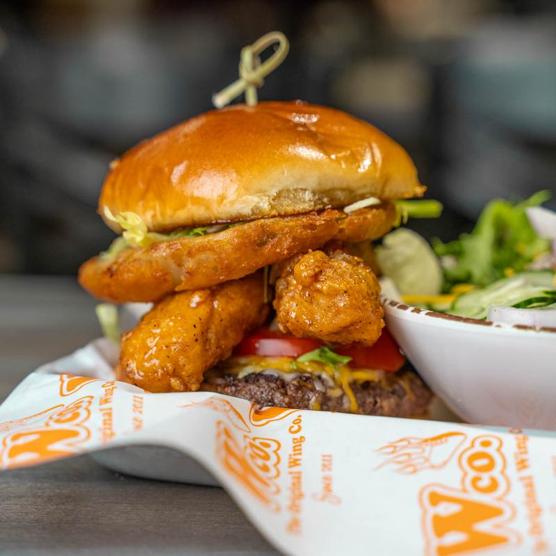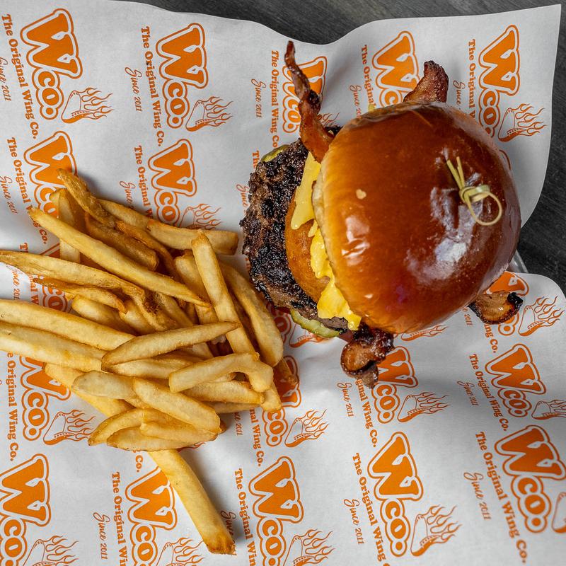 Served on a grilled brioche bun with our legendary fries | Wing Co. B.A.B.A. Burgers: All B.A.B.A. Burgers come with 2 patties for 16.50 or single patty option for 13.50